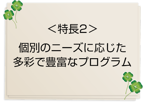 シャロームでは、定期的に面談を行い、お一人おひとりの個別プログラムを作成しています。普段通りに見える体調の変化も、実は心の中では不安が大きくなっていたり、我慢をしていたり、気持ちと体の回復には差があるものです。全てのプログラムを通じ、体力・集中力・その他様々な機能の回復を実感し、自ら把握できるようサポートしています。